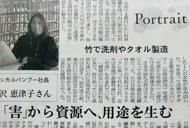 日本経済新聞中国地方版Portraitにて、弊社代表田澤のインタビューと共に創業10年間の歩みやこれから取り組む「竹で未来をデザインする総合商社への進化」をご紹介いただきました。