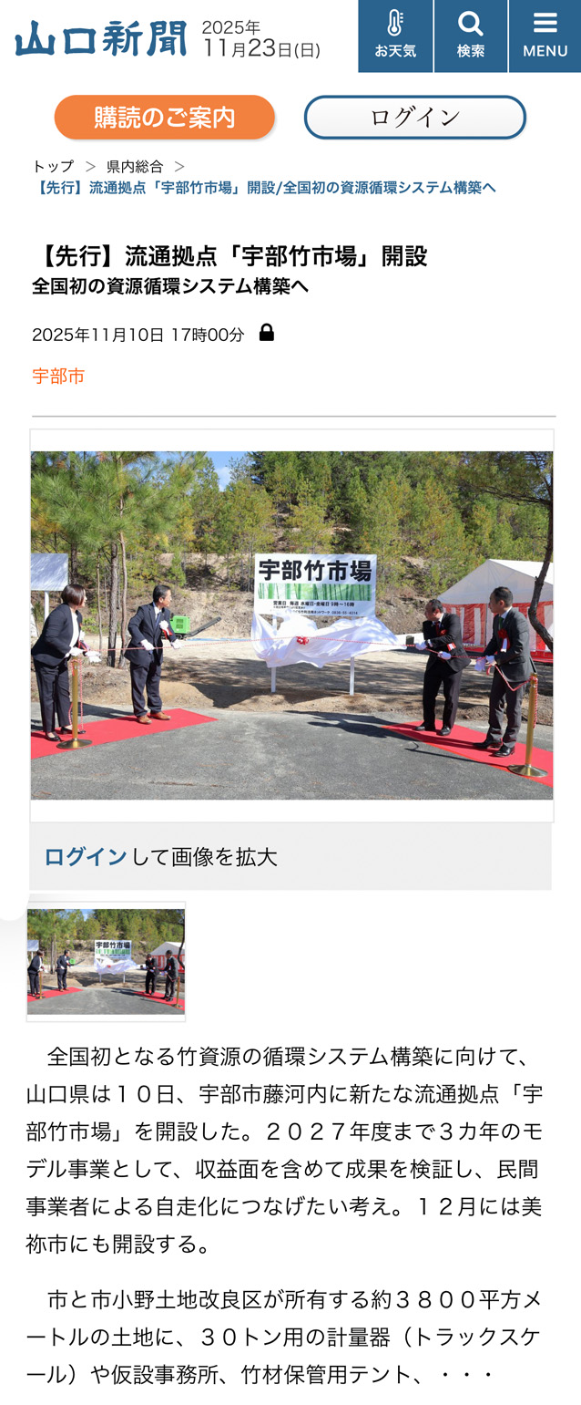 『流通拠点「宇部竹市場」開設』として、宇部市藤河内に新たな流通拠点「宇部竹市場」を開設したことが取り上げられました。